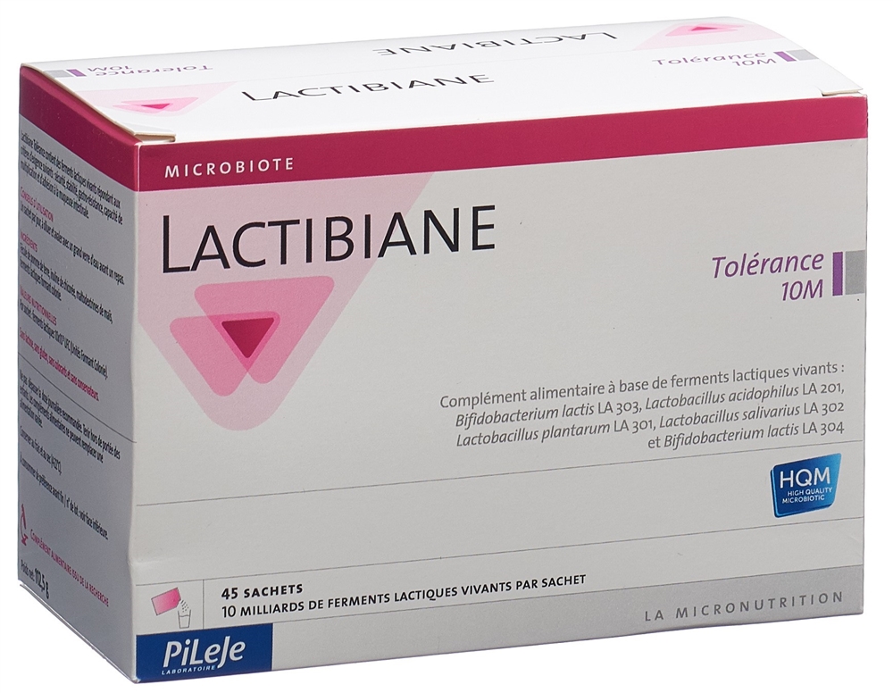 Jede Dosis Lactibiane Tolerance 10M enthäl 10 Milliarden lebende Milchsäurebakterien Bifidobacterium lactis LA303, Lactobacillus acidophilus LA201, Lactobacillus plantarum LA301, Lactobacillus salivarius LA302 und Bifidobacterium lactis LA304.Das Sortiment Lactibiane besteht aus Milchsäurebakterien, die folgenden Kriterien entsprechen: Überleben und Funktionsfähigkeit auf der gesamten Länge des Verdauungstraktes, Anhaften auf den Zellen der Darmschleimhaut.