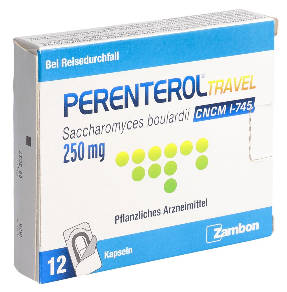 Perenterol travel ist ein Antidiarrhoikum und enthält als Wirksubstanz einen Hefepilz (Saccharomyces boulardii CNCM I-745). Es dient zur Behandlung von Reisedurchfall. Es ermöglicht die Wiederherstellung der Darmflora und die Linderung des Durchfalls.