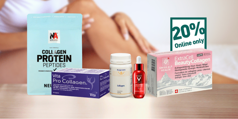 Qu’est-ce qui contribue à la fermeté et à l’élasticité de la peau ainsi qu’au bien-être général? Le collagène joue un rôle essentiel. Avec le temps, la production naturelle de collagène diminue. Les produits au collagène peuvent compléter votre routine quotidienne et accompagner votre beauté de l’intérieur. Découvrez une sélection de produits au collagène et profitez de 20% d’avantage – exclusivement dans la boutique en ligne Amavita.