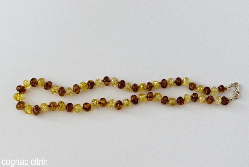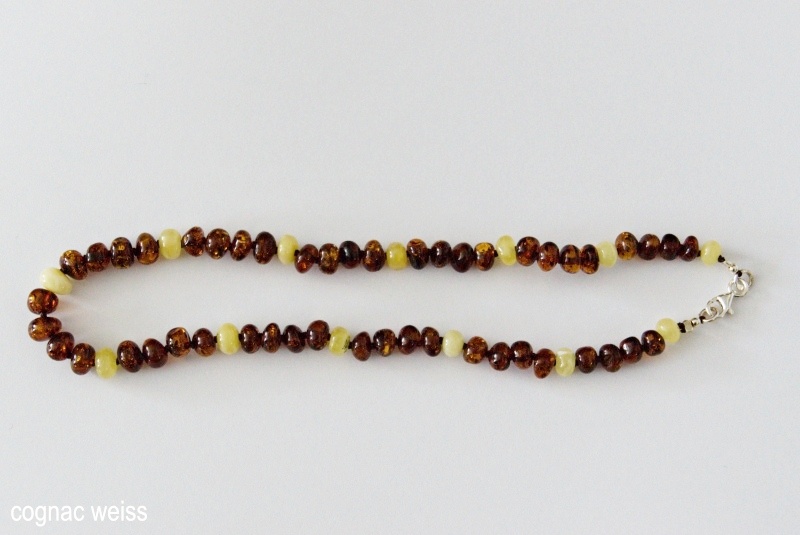 La collana d'ambra citrino cognac opaco AMBERSTYLE con chiusura a moschettone è ideale per la dentizione dei bambini. Realizzata in vera ambra baltica, offre eleganza e sicurezza in un unico prodotto.