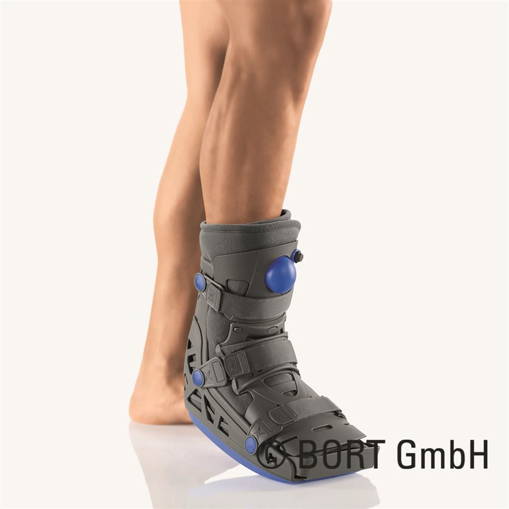 Il sistema avanzato a due camere d'aria integra geometricamente e stabilizza il piede e la gamba, offrendo un sostegno robusto e affidabile. Questa funzionalità è cruciale durante il processo di guarigione post-operatoria o post-traumatica, contribuendo a prevenire ulteriori complicazioni.