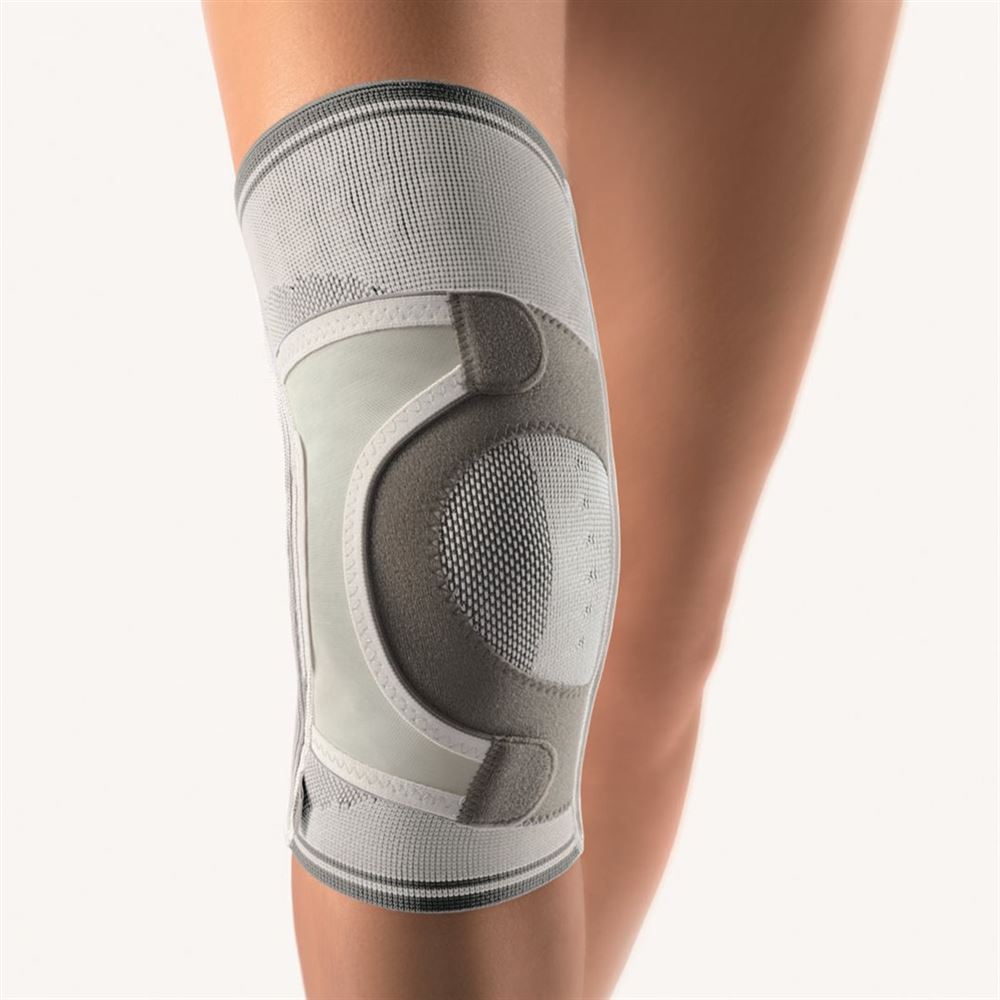 Ginocchiera di alta qualità per la compressione dei tessuti morbidi con pelotta in silicone per la stabilizzazione e lo scarico dell‘articolazione del ginocchio