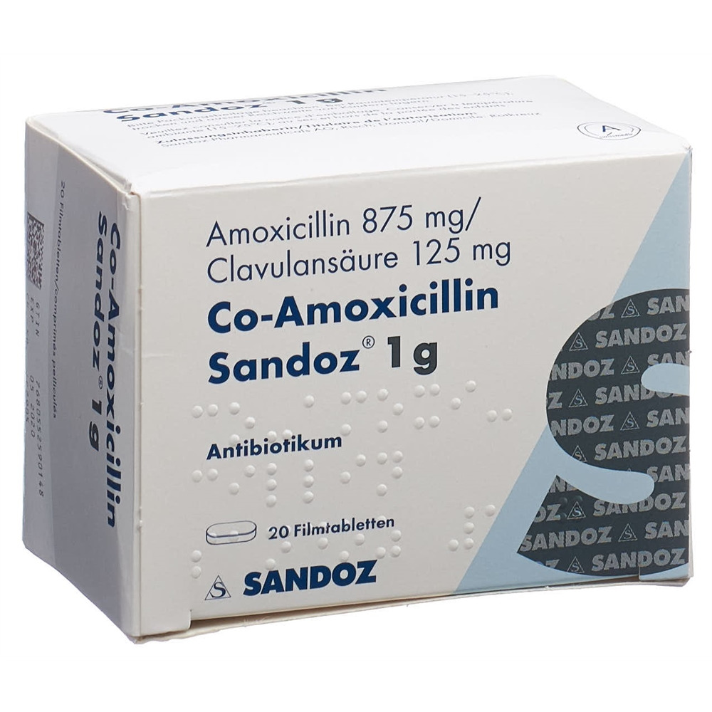 55259 (Co-Amoxicilline Sandoz 1 g, compresse rivestite con film) (Swissmedic)