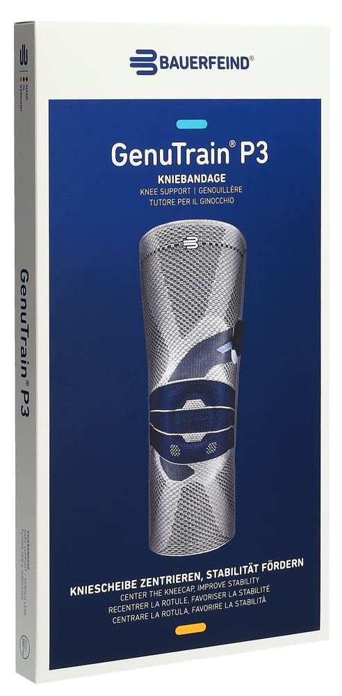 L'elemento distintivo del GenuTrain S è l'inserto rotuleo viscoelastico che circonda la rotula per fornire una compressione intermittente. Questo effetto di massaggio dinamico è potenziato dal tessuto 3D, che non solo attiva i muscoli, ma stimola anche il processo naturale di guarigione. La combinazione di stabilizzatori articolati e un sistema di cinghie assicura un supporto passivo aggiuntivo, favorendo il comfort e la sicurezza durante l'uso.
